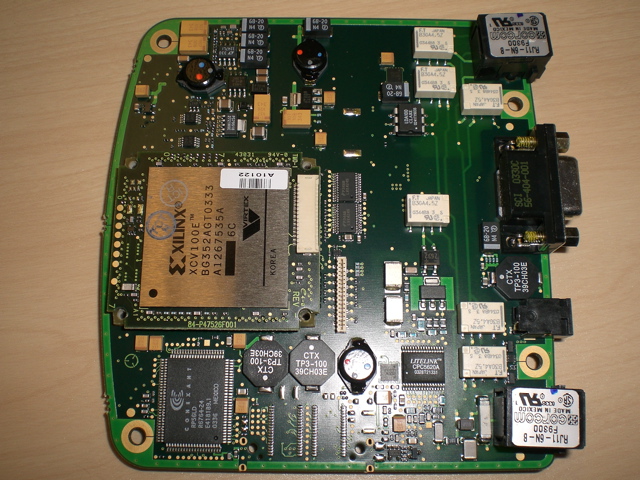 When I was looking for something with a largish FPGA that I could re-purpose for password cracking I suddenly thought of these again and figured that they probably used an FPGA for the encryption bit, so I decided to open one up and have a look. I assumed that they probably had some sort of cool tricks built in so that opening the case would trip some sort of tamper switch and the device would instantly zero its keystore, or do something else to makes the device inoperable. Seeing as I didn’t really think I’d use if as a voice encryption device anyway and was about to break the warantee sticker I decided to see if I could defeat the tamper switch, so I plugged the device in, generated a new public / private key pair and then very carefully drilled a hole through the back of the case. After much poking around with a probe, careful peering with a fiber scope, etc I decided to just risk it and undo the screws… Turns out that hte devices don’t have any sort of tamper prevention, and it carried on running just fine, with no loss of keying material, etc.